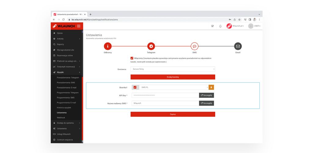 The SMS gateway enables instant communication with your client. It is used to send booking confirmations, reminders about scheduled appointments, client phone number verification, etc.