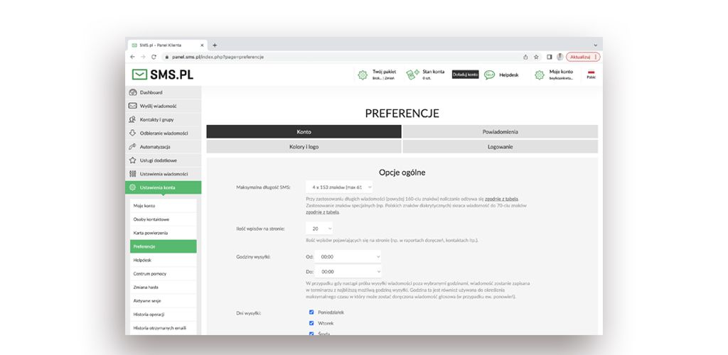 In the side menu, select Account Settings > Preferences > Maximum SMS length.