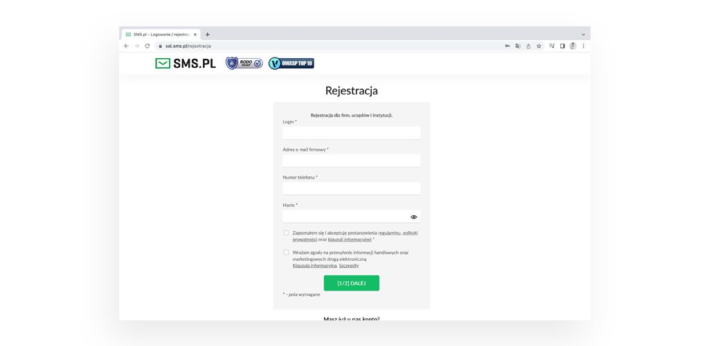 After logging in, select Mailings > Settings > SMS in the side menu. In the Provider field, leave the Company server option and click Add Gateway.