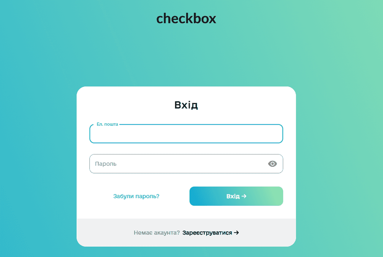 - Потрібно увійти в свій акаунт або зареєструватись на сайті checkbox.ua.